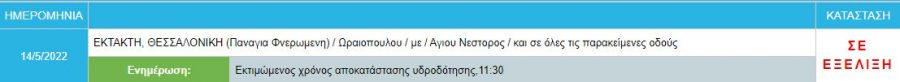 Έκτακτη διακοπή νερού είναι σε εξέλιξη σε περιοχή της Θεσσαλονίκης.