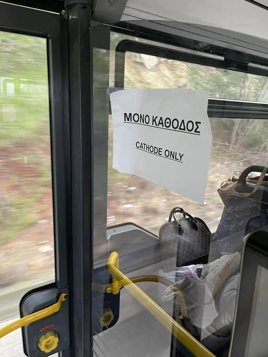 Φωτογραφία που κάνει τον γύρο του διαδικτύου δείχνει να έχει επικολληθεί στο εσωτερικό του λεωφορείου χαρτί μέσω του οποίου γνωστοποιείται στο επιβατικό κοινό ότι από μια συγκεκριμένη πόρτα επιτρέπεται μόνο η αποβίβαση των επιβατών και όχι η επιβίβαση.