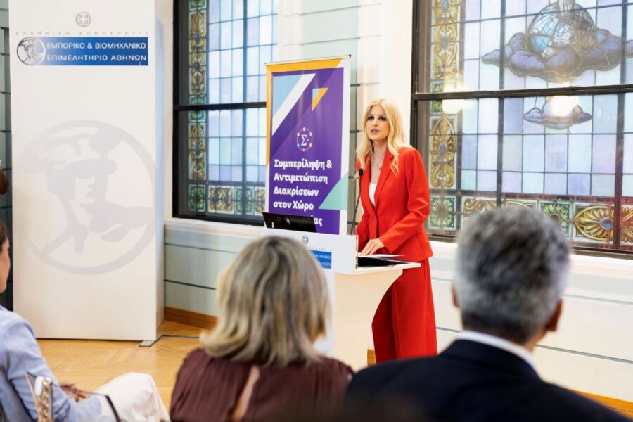 Με σταθερή προσήλωση στη δημιουργία ενός εργασιακού περιβάλλοντος χωρίς αποκλεισμούς και διακρίσεις, το Εμπορικό και Βιομηχανικό Επιμελητήριο Αθηνών (ΕΒΕΑ) και το Υπουργείο Κοινωνικής Συνοχής και Οικογένειας διοργάνωσαν από κοινού ειδική εκδήλωση ευαισθητοποίησης και ενημέρωσης, τη Δευτέρα 7 Ιουλίου, στο Κέντρο Επιχειρηματικότητας «Κωνσταντίνος Μίχαλος».