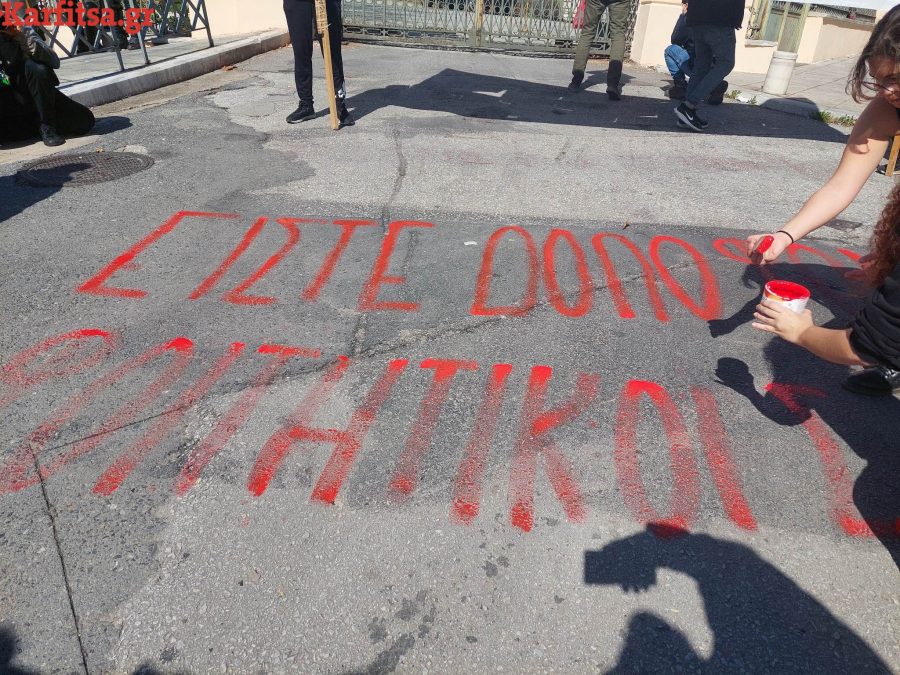 Μέχρι το υπουργείο Μακεδονίας και Θράκης έφτασαν οι διαδηλωτές. Εκεί κρέμασαν χαρτόνια με συνθήματα στην πόρτα του υπουργείου και έγραψαν με σπρέι στο δρόμο στην μπροστινή είσοδο «ΕΙΣΤΕ ΔΟΛΟΦΟΝΟΙ».