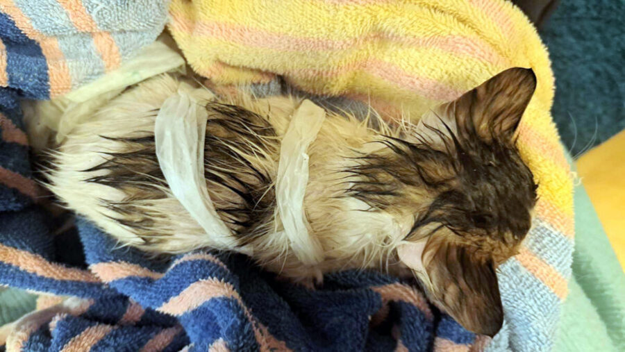 Μπροστά σε ένα αποτρόπαιο περιστατικό κακοποίησης ζώου βρέθηκε μια φιλόζωος στην πόλη της Καβάλας, όταν το βράδυ του Σαββάτου 5 Απριλίου 2025, στην οδό Περραιβού, άκουσε κλάμα γάτας, για να ανακαλύψει στη συνέχεια ότι ένα μικρό γατάκι, βρεγμένο και εξαντλημένο, βρίσκονταν μέσα σε μια κούτα, με τα πόδια του δεμένα και μια πλαστική σακούλα τυλιγμένη γύρω από το σώμα του.