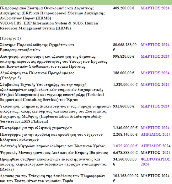 Σύστημα Παρακολούθησης Οχημάτων και Εμπορευματοκιβωτίων, Ανάπτυξη Μητρώου Παρακολούθησης του Ιδιωτικού Χρέους, Προμήθεια σταθμών επικοινωνιών έκτακτης ανάγκης και παροχής κλιματολογικών δεδομένων περιοχών ενδιαφέροντος (Radar), Πλατφόρμα για την ελληνική χειροτεχνία, αλλά και Πλατφόρμα για την προβολή και προώθηση του σύγχρονου ελληνικού πολιτισμού, είναι ορισμένα από τα έργα που θα προκηρυχθούν από την Κοινωνία της Πληροφορίας τους επόμενους δύο με τρεις μήνες.