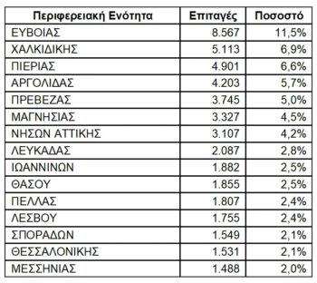 Ενδεικτικά, οι 15 περιφερειακές ενότητες με τον μεγαλύτερο αριθμό ενεργοποιημένων επιταγών τον Ιούνιο: