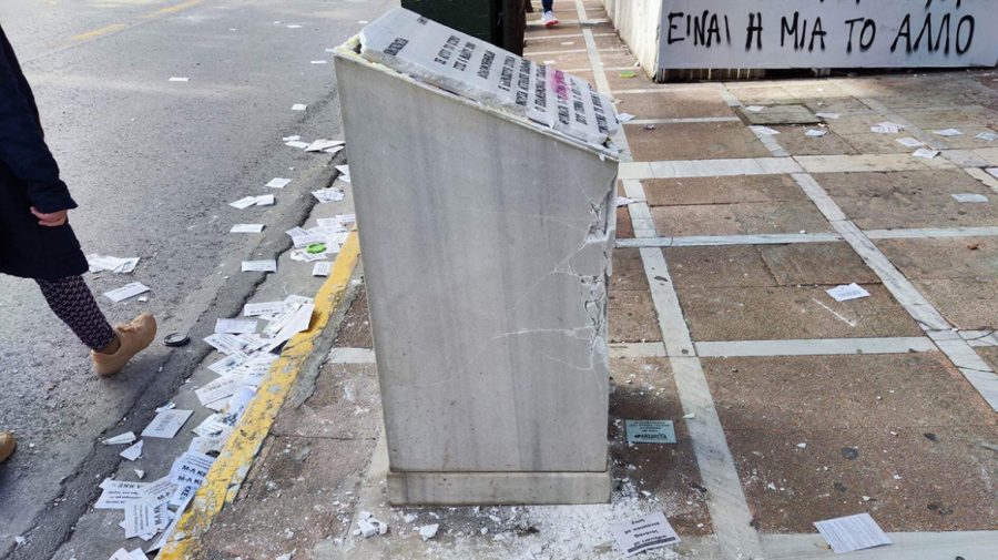Ειδικότερα, τη στιγμή που οι αναρχικοί ανέβαιναν την οδό Σταδίου με κατεύθυνση το Σύνταγμα κρατώντας πανό ορισμένοι εξ αυτών αποκόπηκαν από το μπλοκ τους και έσπασαν το μνημείο που έχει φτιαχτεί στη μνήμη της Αγγελικής Παπαθανασοπούλου, του Επαμεινώνδα Τσάκαλη και της Παρασκευής Ζούλιας.