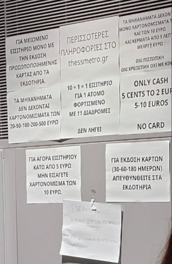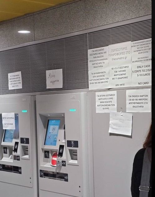 Συγκεκριμένα, για την έκδοση εισιτηρίων στα μηχανήματα του μετρό απαιτούνται μετρητά, ενώ σε πολλές περιπτώσεις δεν δέχεται χαρτονόμισμα, παρά μόνο κέρματα και εννοείται πως υπάρχει και αδυναμία στην πληρωμή με κάρτα.