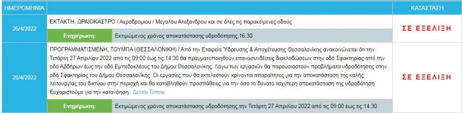 Νέα έκτακτη διακοπή υδροδότησης είναι σε εξέλιξη αυτήν την ώρα σε περιοχή της Θεσσαλονίκης.