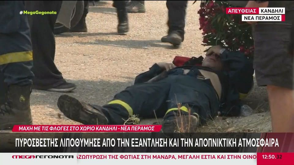 Ένας πυροσβέστης λιποθύμησε από την εξάντληση και την αποπνικτική ατμόσφαιρα στη φωτιά της Νέας Περάμου.