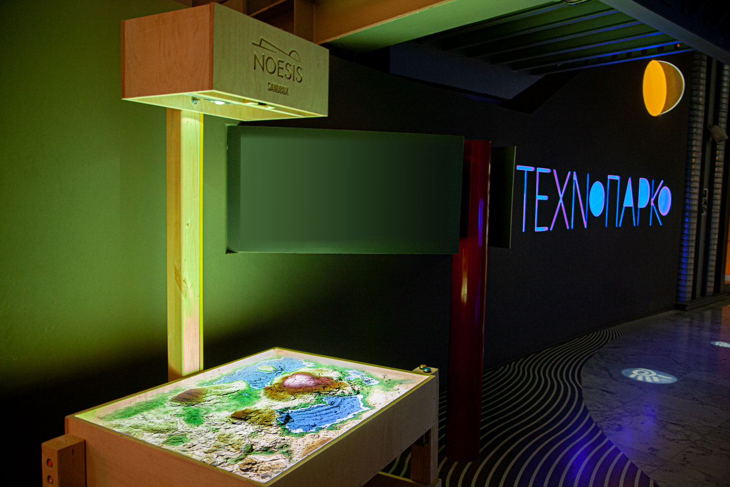 Στους χώρους του ΝΟΗΣΙΣ έχει, επίσης, προστεθεί το AR Sandbox, ένα εκπαιδευτικό και ψυχαγωγικό διαδραστικό έκθεμα. Συνδυάζει εφαρμογές 3D απεικόνισης σε πραγματική άμμο με τη χρήση τεχνολογιών επαυξημένης πραγματικότητας –Augmented Reality (AR) και επιτρέπει στους χρήστες να δημιουργήσουν μοντέλα τοπογραφίας διαμορφώνοντας την πραγματική άμμο, η οποία στη συνέχεια αυξάνεται σε πραγματικό χρόνο από ένα χρωματικό χάρτη ανύψωσης, τοπογραφικές γραμμές περιγράμματος και προσομοιωμένο νερό. Το σύστημα διδάσκει γεωγραφικές, γεωλογικές και υδρολογικές έννοιες, όπως πώς να διαβάσετε έναν τοπογραφικό χάρτη, την έννοια των γραμμών περιγράμματος, των λεκανών απορροής κλπ.