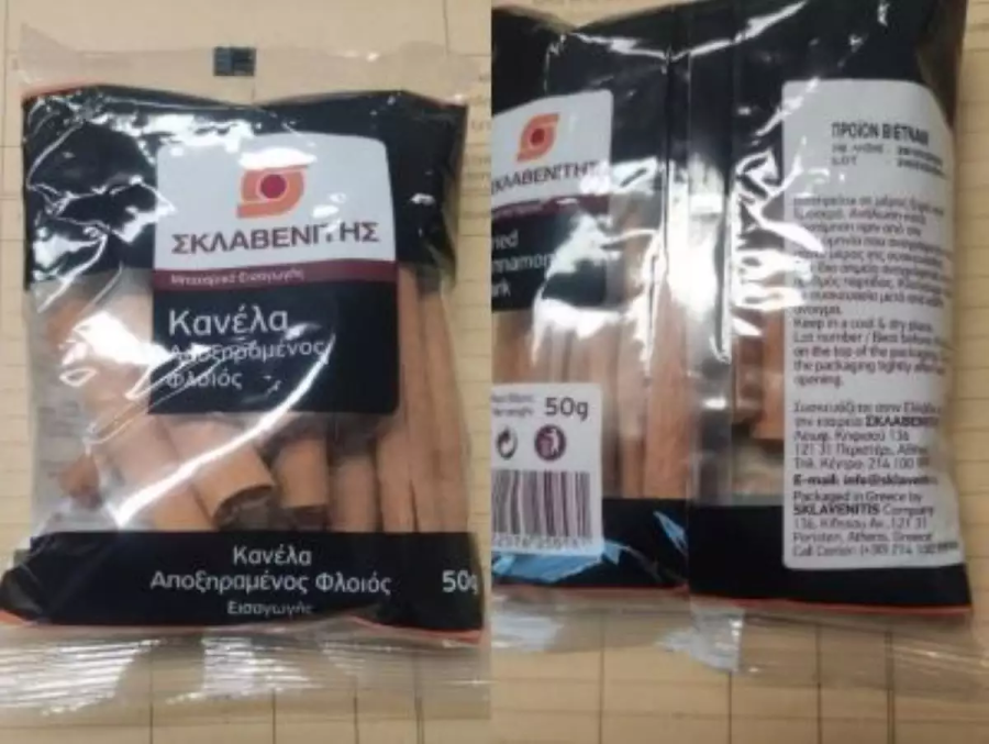 Συγκεκριμένα πρόκειται για το προϊόν με ονομασία πώλησης ‘Κανέλα-Αποξηραμένος φλοιός και εμπορική ονομασία “Σκλαβενίτης”, σε συσκευασία των 50,0g, με αριθμό παρτίδας Lot 2405300840 και ημερομηνία ανάλωσης κατά προτίμηση πριν από 28/05/2026.