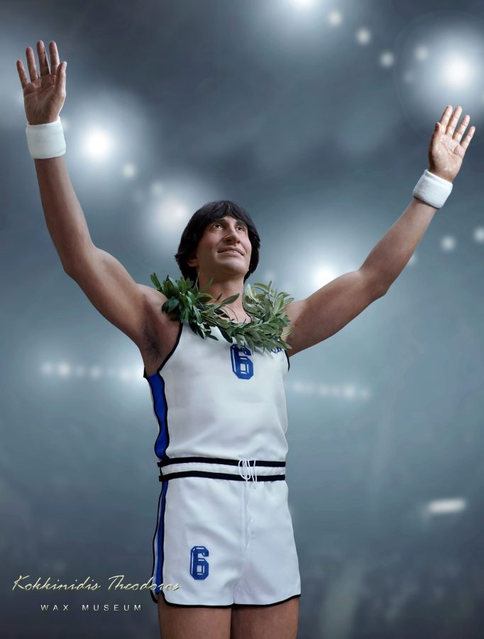 Εμπνευσμένο από τις στιγμές του πανηγυρισμού της μεγάλης νίκης της Εθνικής Ελλάδος στο Ευρωπαϊκό Πρωτάθλημα Μπάσκετ του 1987, το κέρινο ομοίωμα του Παναγιώτη Γιαννάκη είναι σε φυσικό μέγεθος, έχοντας ύψος 1,92 μ. και στο λαιμό του φοράει το στεφάνι της νίκης, μια εικόνα που αποτυπώθηκε στη φωτογραφία η οποία έκανε τότε τον γύρο του κόσμου και τον χαρακτηρίζει μέχρι σήμερα.