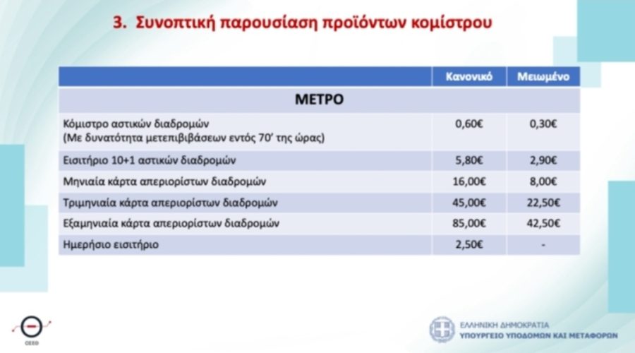 Ανακοινώθηκε και επίσημα η νέα τιμολογιακή πολιτική από τον ΟΣΕΘ τον ΟΑΣΘ και και την Ελληνικό Μετρό 16 ημέρες πριν την επίσημη έναρξη του μετρό, στις 30 Νοεμβρίου.