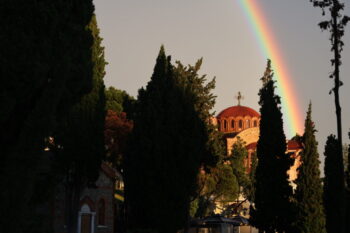 Ένα πανέμορφο ουράνιο τόξο εμφανίστηκε στη Θεσσαλονίκη το απόγευμα της Κυριακής (25/5) μετά από τη βροχή.