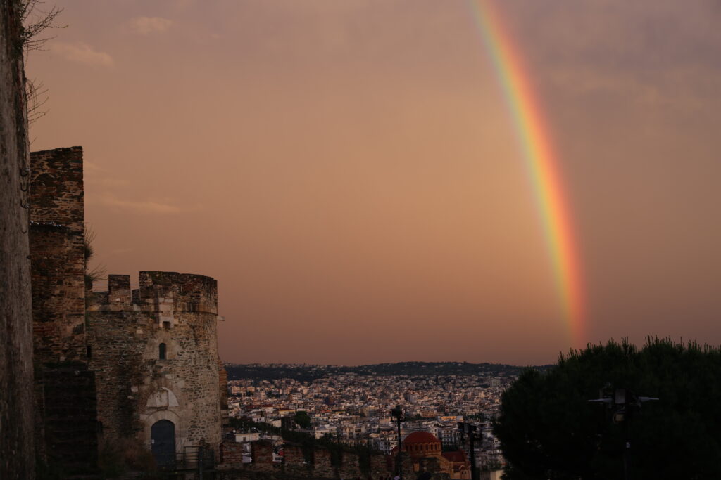 Πανέμορφο ουράνιο τόξο στη Θεσσαλονίκη μετά τη βροχή (ΦΩΤΟ)