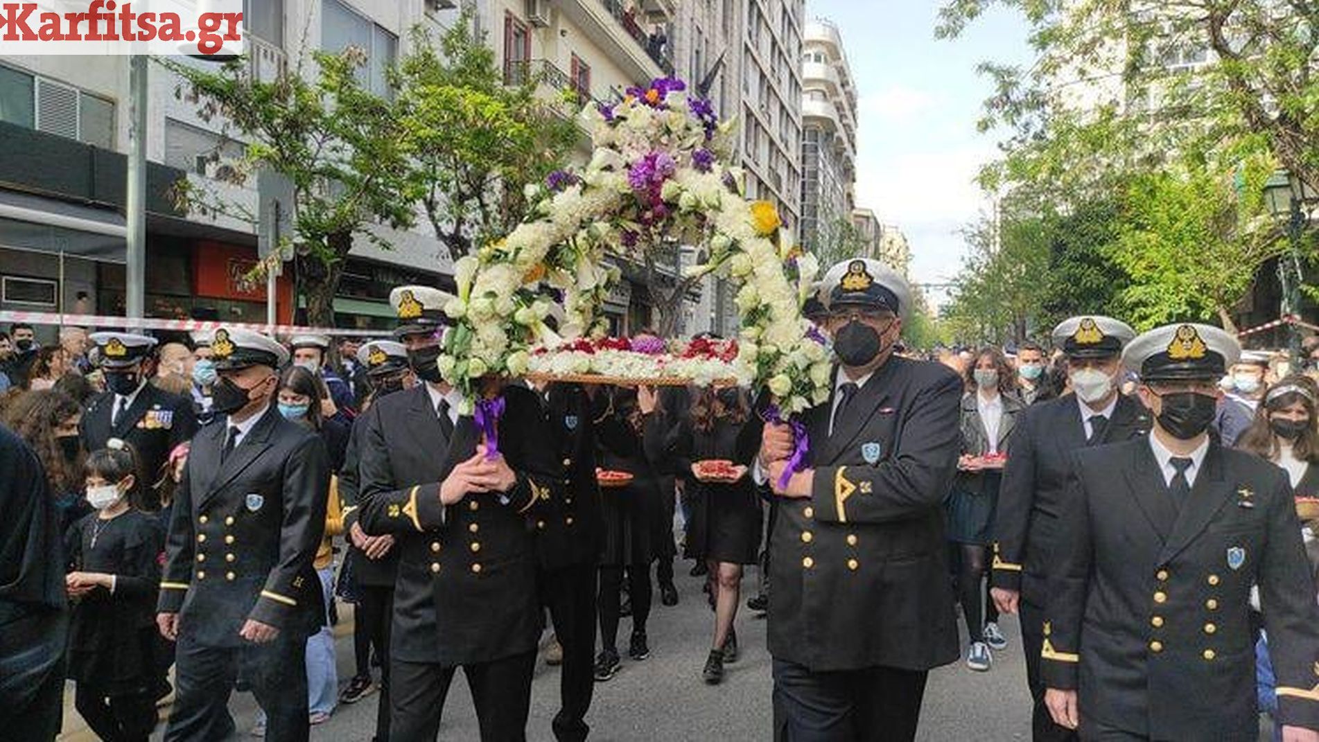 Πλήθος πιστών υπό τους ήχους της μπάντας της αστυνομίας ακολούθησε την περιφορά του Επιταφίου στους κεντρικούς δρόμους της Θεσσαλονίκης.