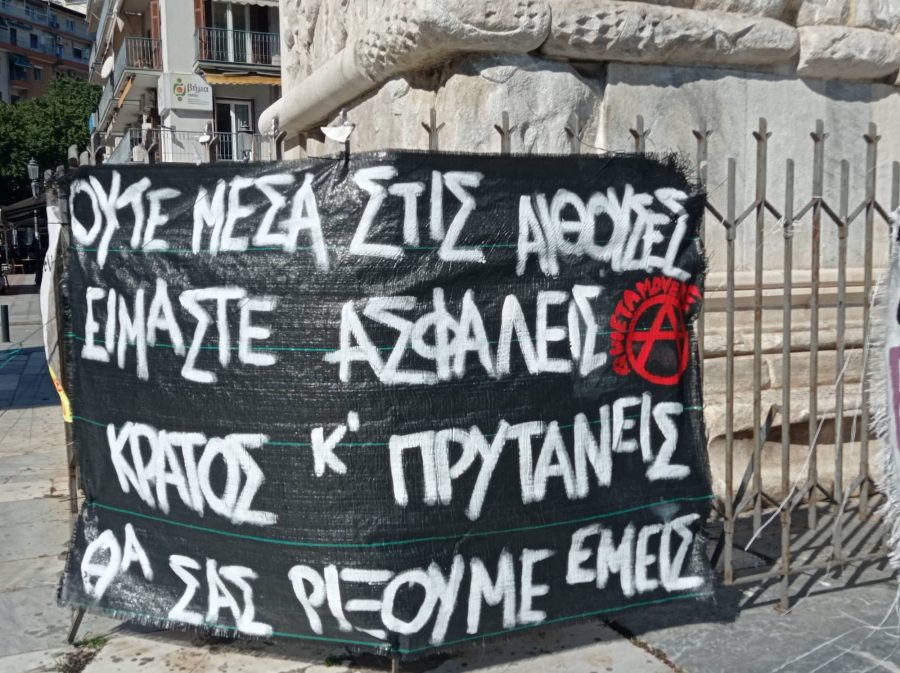 Πορεία διαμαρτυρίας για καλύτερες συνθήκες διεξαγωγής μαθημάτων και για την παρουσία των ΜΑΤ στους χώρους του Αριστοτελείου Πανεπιστημίου πραγματοποιήθηκε σήμερα, Πέμπτη, το μεσημέρι στo κέντρο της Θεσσαλονίκης.
