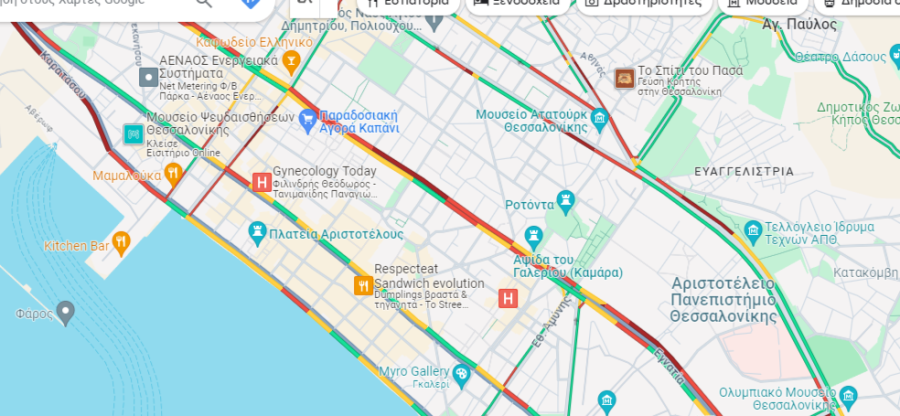 Όσον αφορά τους κεντρικούς δρόμους της πόλης, με πολύ χαμηλές ταχύτητες κινούνται τα οχήματα στην οδό Εγνατία, με τις μεγαλύτερες δυσκολίες να καταγράφονται στο ύψος της Καμάρας.