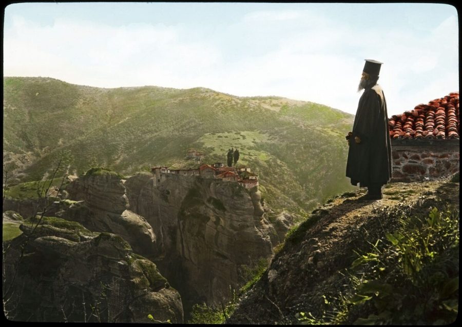 Στην έκθεση λοιπόν δεν ήταν δυνατόν να ταξινομηθεί το υλικό χρονολογικά, οπότε χωρίστηκε σε ενότητες, με βάση τη θεματολογία. «Σε μία ενότητα είναι οι ταξιδιώτες – μέλη της ομάδας, που φωτογραφίζονται πολύ συχνά μαζί με μοναχούς. Αυτό είναι κάτι που μας έκανε μεγάλη εντύπωση, γιατί -αν και σήμερα θα ήταν κάτι δεδομένο να ποζάρουν και να βγαίνουν σε διάφορες καταστάσεις μέσα στο Άγιον Όρος, για εκείνη την περίοδο ήταν σπάνιο, κυρίως διότι τα υλικά ήταν ακριβά και δεν τα ξόδευες εύκολα», τονίζει.