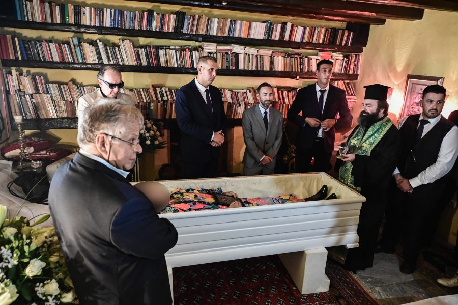 Πλήθος κόσμου έσπευσε στο σπίτι της Μαίρης Χρονοπούλου από νωρίς, μάλιστα στο εσωτερικό του σπιτιού το φέρετρό της είναι ανοιχτό για τον τελευταίο αποχαιρετισμό.