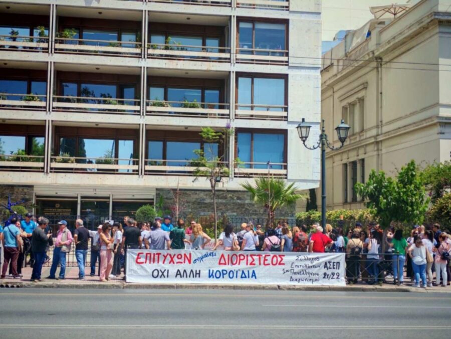 Την Παρασκευή 23/5 πραγματοποιήθηκαν ταυτόχρονες συγκεντρώσεις διαμαρτυρίας του Συλλόγου Επιτυχόντων Πρώτου Πανελλήνιου Γραπτού Διαγωνισμού ΑΣΕΠ 2Γ/2022 στο Υπουργείο Εσωτερικών στην Αθήνα και στο Υπουργείο Μακεδονίας-Θράκης στη Θεσσαλονίκη, με τη συμμετοχή πολλών δεκάδων μελών του Συλλόγου και επιτυχόντων από όλη την Ελλάδα.