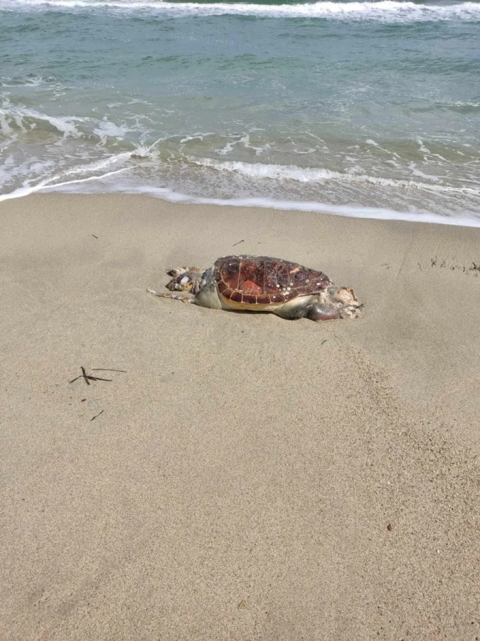 Μία χελώνα καρέτα-καρέτα ξεβράστηκε την Δευτέρα στα παράλια των Μεσαγγάλων, στη Λάρισα.