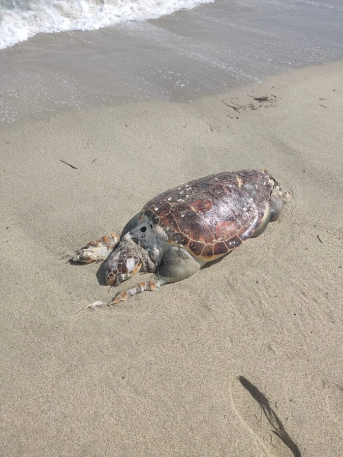 Περίοικος εντόπισε την θαλάσσια χελώνα στην παραλία, αναρτώντας φωτογραφίες της. Οπως αναφέρουν πληροφορίες του onlarissa.gr, το άτυχο ζώο εντοπίστηκε δυστυχώς νεκρό στην ακροθαλασσιά.