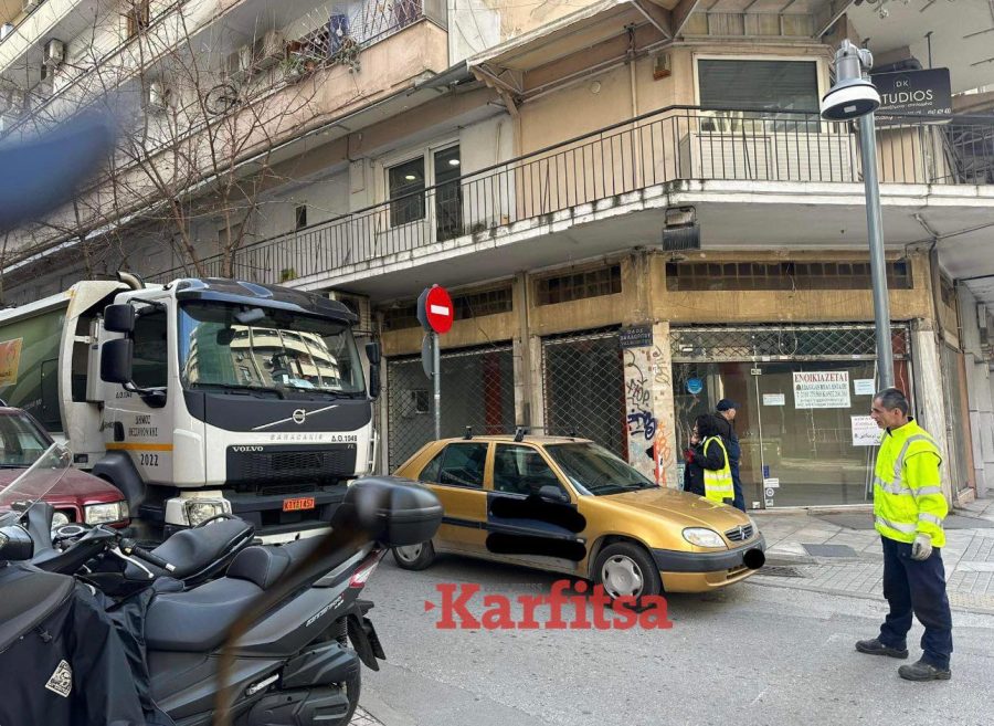 Απορριμματοφόρο «εγκλωβίστηκε» στο κέντρο της Θεσσαλονίκης λόγω λανθασμένου παρκαρίσματος οδηγού.