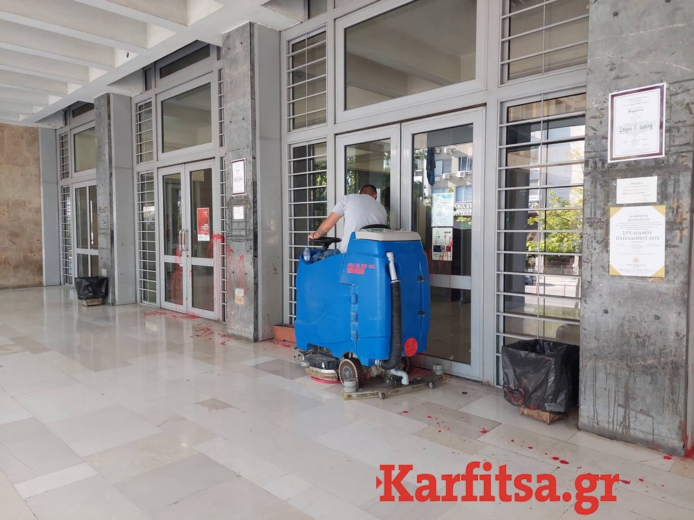 Μπογιές και τρικάκια πέταξαν άγνωστοι στην είσοδο του Δικαστικού Μεγάρου της Θεσσαλονίκης, επί της οδού 26ης Οκτωβρίου, γύρω στη μιάμιση μετά τα μεσάνυχτα, σε ένδειξη αλληλεγγύης σε αναρχικό που κάνει απεργία πείνας.