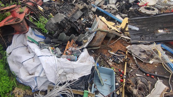 Κατά τον έλεγχο, εντός περιφραγμένου χώρου, βρέθηκαν διάσπαρτα διάφορα μέταλλα και κυρίως εξαρτήματα και αποσυναρμολογημένα μέρη οχημάτων (κινητήρες, δίσκοι πέδησης, φίλτρα λαδιού κ.α), τα περισσότερα από τα οποία ήταν ρυπασμένα με ορυκτέλαια και βρίσκονταν σε απευθείας επαφή με το έδαφος.
