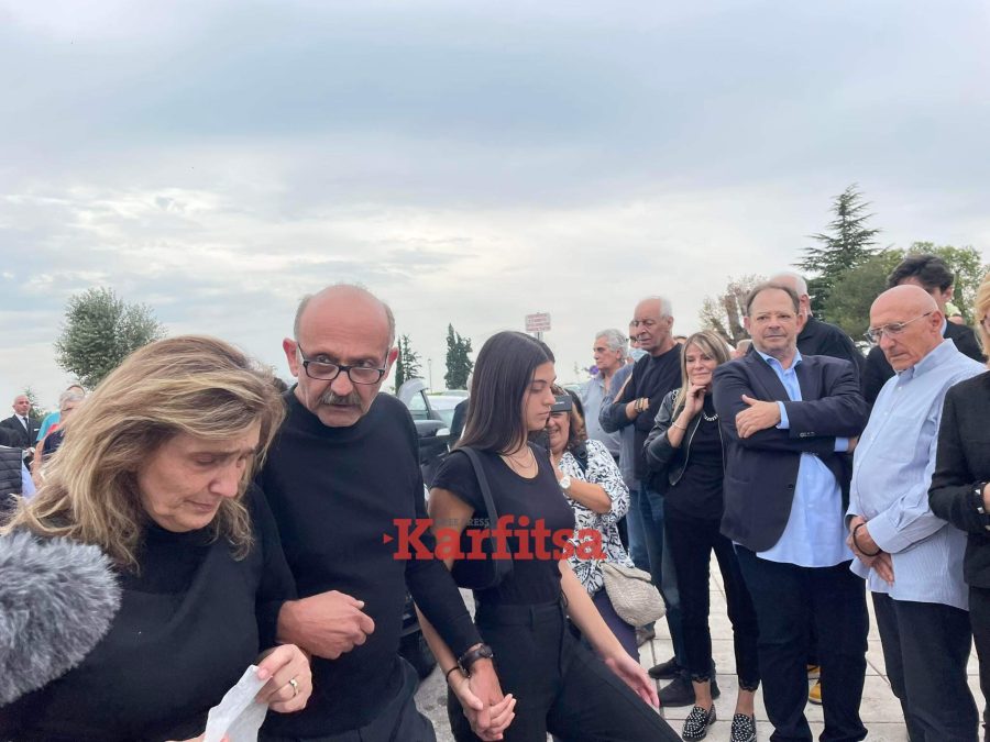 Συντετριμμένη ήταν η γυναίκα του Γιάννη Ιωαννίδη, η οποία έφτασε υποβασταζόμενη στην “τελευταία κατοικία” του συζύγου της.