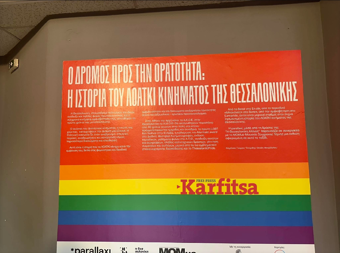 Μιλώντας στην Karfitsa, ο επιμελητής της έκθεσης «Ο δρόμος προς την ορατότητα – Η ιστορία του ΛΟΑΤΚΙ κινήματος της Θεσσαλονίκης» , Γιώργος Τσιτιρίδης τόνισε «Θα είναι ανοιχτή απο τις 17:00-22:00 μέχρι και την Κυριακή. Η έκθεση αυτή έχει να κάνει ένα πολύ μεγάλο κομματι του δικού μου αρχειακού υλικού που αφορά την ιστορία του κινήματος των ΛΟΑΤΚΙ στη Θεσσαλονίκη και περιλαμβάνει ιστορικές διακηρύξεις, τα περιοδικά της εποχής, κάποια προσωπικά αντικείμενα ανθρώπων. Έχει μια έκθεση φωτογραφίας της Όλγας Δέικου με τα προσωπα που συνέβαλαν και σημάδεψαν το κίνημα και κάποιες πληροφορίες για το πως ζούσαν και κοινωνικοποιούνταν οι ΛΟΑΤΚΙ την εποχή εκείνη, δηλαδή μιλαμε μετά πρώτης της χούντας όταν ξεκινάει και γεννιέται το κίνημα, δηλαδή λίγο πιο αργά λόγω της χούντας στην Ελλάδα σε σχέση με την Αμερική και την Ευρώπη μέχρι και περίπου την μέρες μας κυρίους σταθμούς εκείνη την δεκαετία».