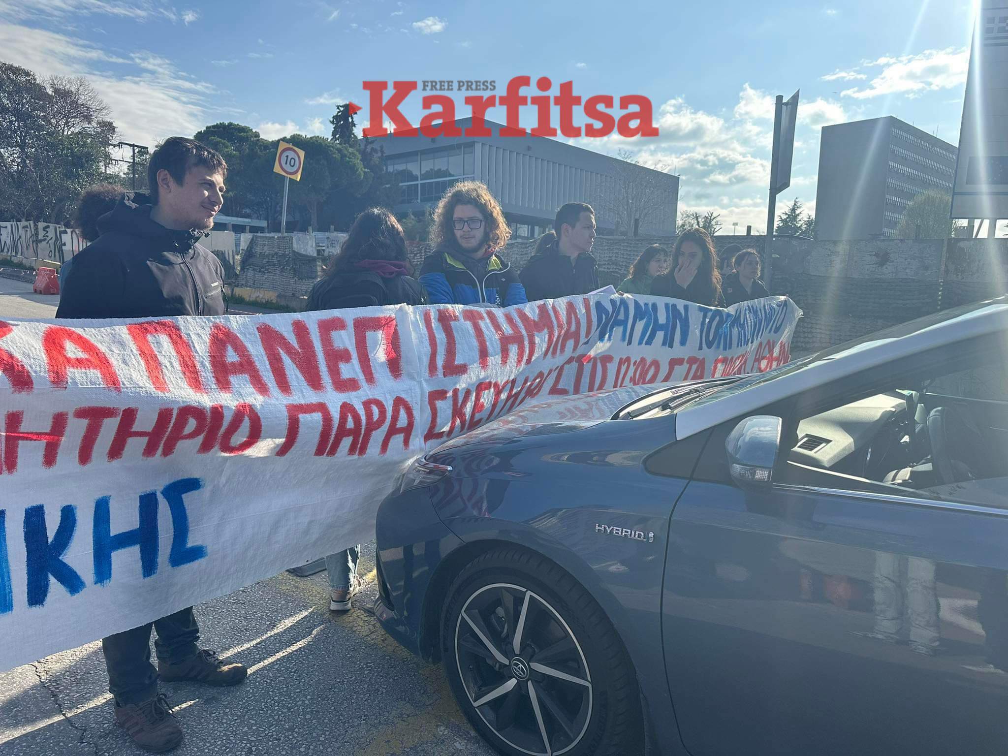 Ένταση επικράτησε μεταξύ φοιτητών και οδηγό ταξί όταν οι πρώτοι δεν άφησαν τον οδηγό να περάσει από την είσοδο του ΑΠΘ που βρίσκεται σε συμβολικό αποκλεισμό στην οδό Εγνατία.