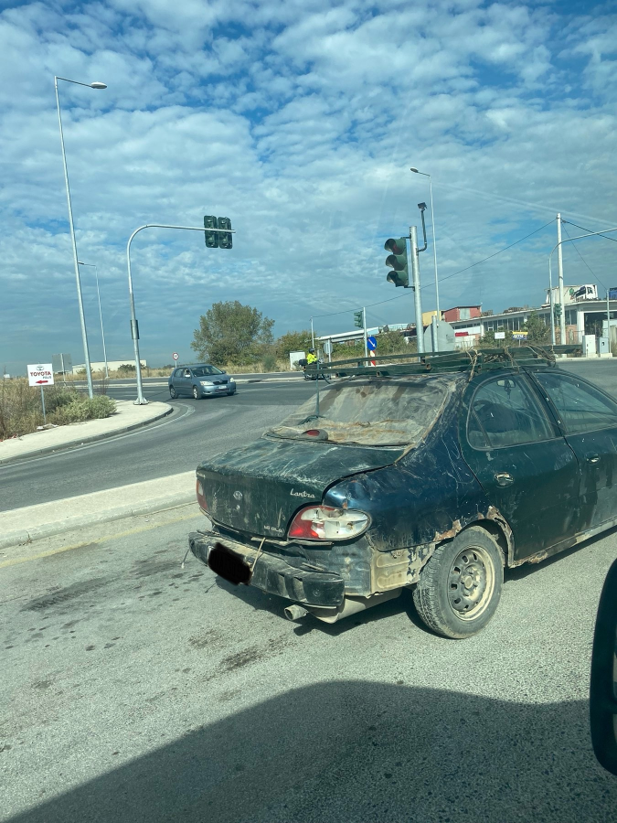 Τρανταχτό παράδειγμα αυτό της φωτογραφίας που έχει αναρτηθεί στα social media. Όπως μπορείτε να δείτε, ένα παλαιό όχημα το οποίο βρίσκεται σε άθλια κατάσταση κινείται χωρίς «πρόβλημα» σε κεντρικό δρόμο της δυτικής Θεσσαλονίκης.