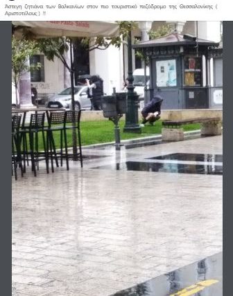 Σύμφωνα με δημοσίευση που έγινε στην ομάδα του facebook «Σωματείο Φίλοι του Ιστορικού Κέντρου της Θεσσαλονίκης», μία γυναίκα κατέβασε το παντελόνι της και ξεκίνησε να «κάνει την ανάγκη της».