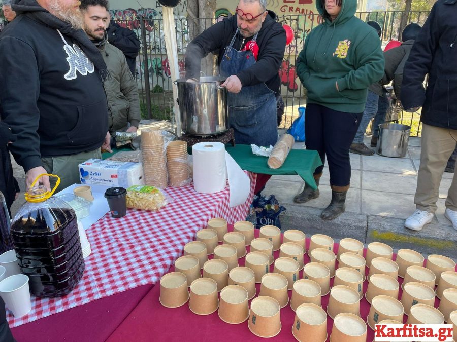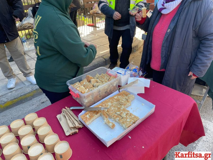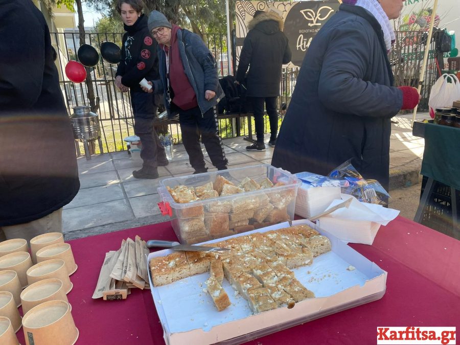 Εν όψη της γιορτής του Αγίου Βαλεντίνου, οι βιοκαλλιεργητές αποφάσισαν να διανείμουν δωρεάν στους περαστικούς χυλόπιτες και χυλοπίτες από βιολογικά υλικά τις οποίες μαγείρευαν εκείνη τη στιγμή σε δύο μεγάλα καζάνια.