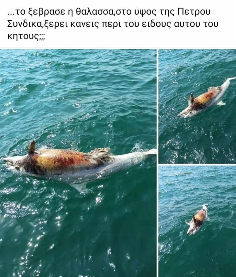 Ένα νεκρό δελφίνι ξέβρασε ο Θερμαϊκός στη Θεσσαλονίκη, στο ύψος της οδού Πέτρου Συνδίκα.