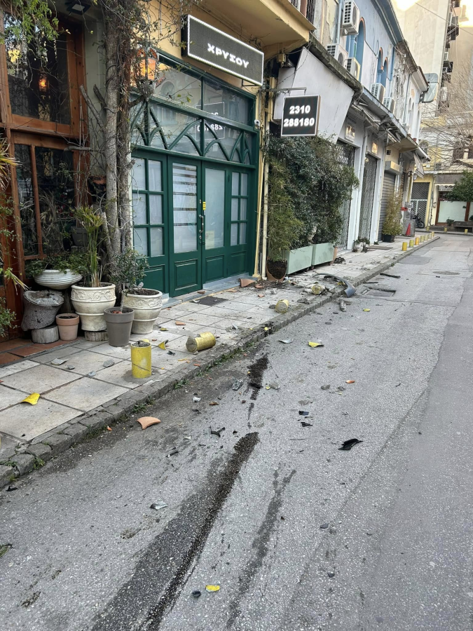 Αποτέλεσμα ήταν να ξηλώσει τα κολωνάκια αλλά και μερικές γλάστρες που στόλιζαν το πεζοδρόμιο.