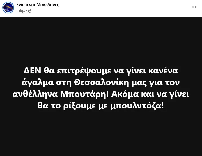 Μέλη της εθνικιστικής οργάνωσης «Ενωμένοι Μακεδόνες» προχώρησαν σε μία εμπρηστική ανάρτηση λίγες ώρες μετά την είδηση για τοποθέτηση αγάλματος του Γιάννη Μπουτάρη στην πλατεία Φαναριωτών, στη Θεσσαλονίκη.