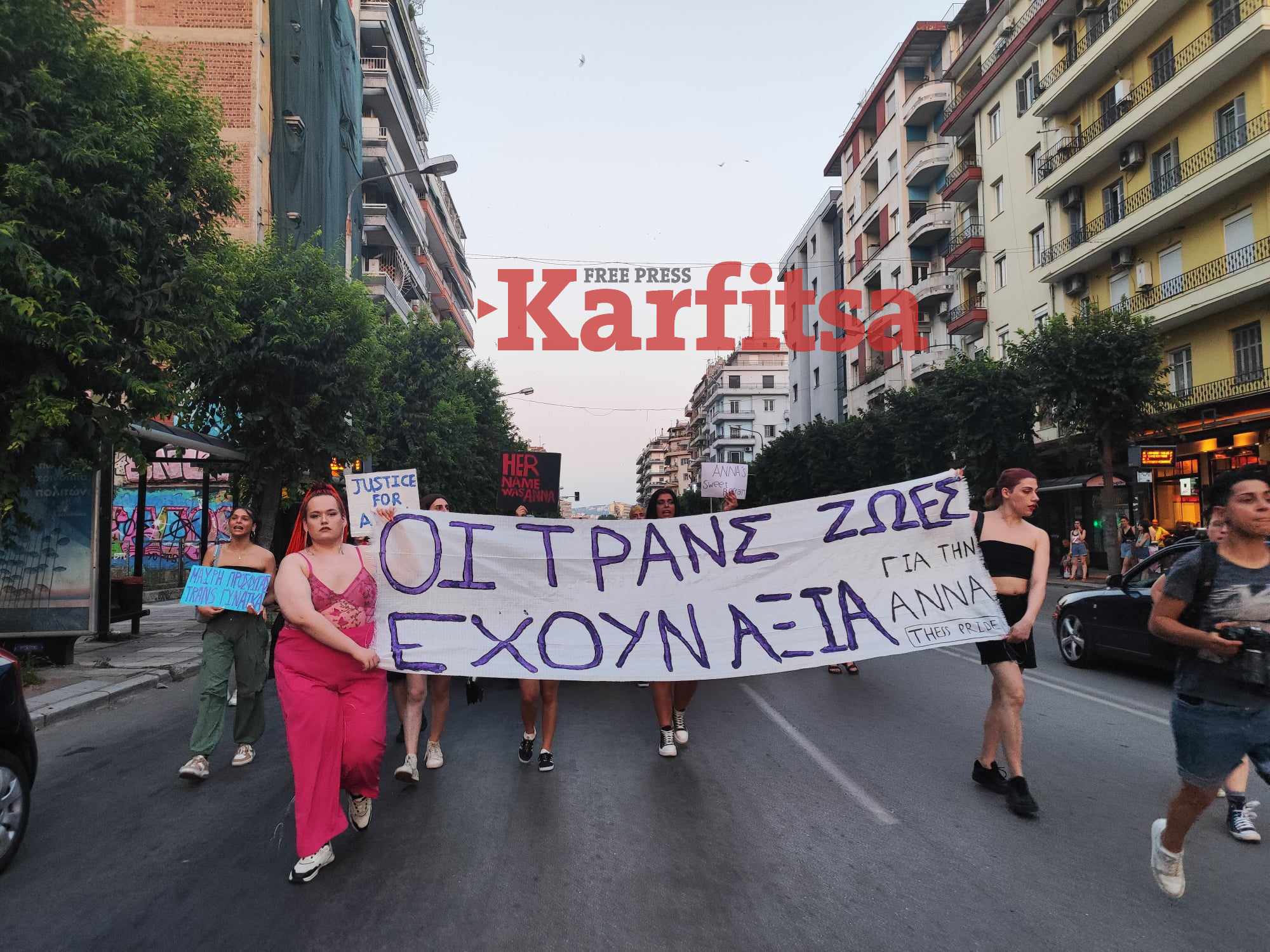 Σε πορεία διαμαρτυρίας εξελίχθηκε η συγκέντρωση που πραγματοποιήθηκε νωρίτερα σήμερα, Τετάρτη το απόγευμα στη Θεσσαλονίκη για τη δολοφονία της 46χρονης τρανς γυναίκας Άννας Ιβάνκοβα.