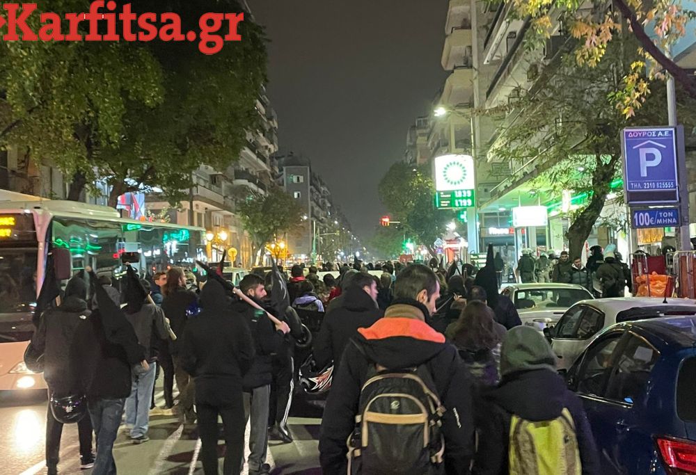 Η πορεία είχε προορισμό το Ιπποκρατειο Νοσοκομείο Θεσσαλονίκης, εκεί όπου άφησε την τελευταία του πνοή ο 16χρονος Κώστας, μετά από πυροβολισμό στο κεφάλι από αστυνομικό της ομάδας ΔΙΑΣ.