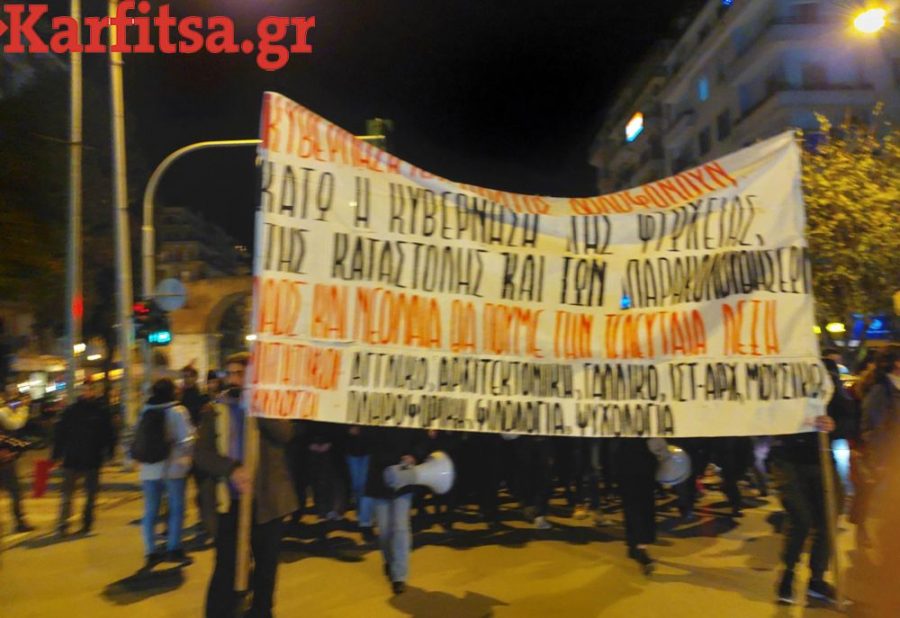 Λίγο μετά τις 19.00 το απόγευμα άτομα συγκεντρώθηκαν στην Καμάρα και αυτή τη στιγμή πραγματοποιούν πορεία σε κεντρικούς δρόμους της πόλης φωνάζοντας συνθήματα κατά της αστυνομίας.