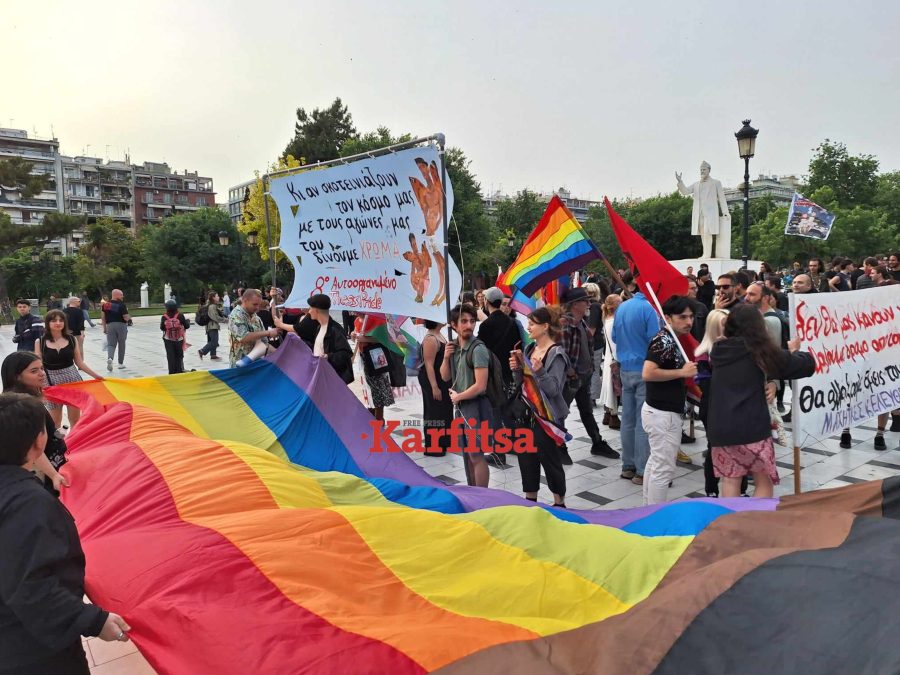 Τα μέλη της ΛΟΑΤΚΙ κοινότητας συγκεντρώθηκαν μετά τις 18.00 γύρω από το άγαλμα Βενιζέλου με το σύνθημα «κι αν σκοτεινιάζουν τον κόσμο μας με τους αγώνες μας του δίνουμε χρώμα» και αιτήματα κατά της ομοτρανσφοβίας και του σεξισμού.