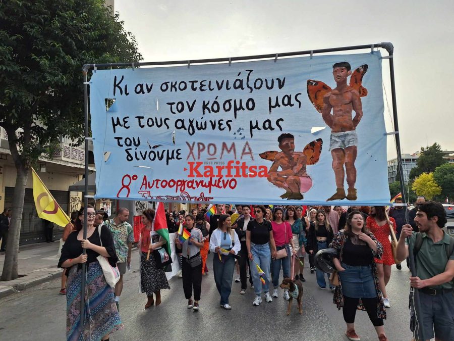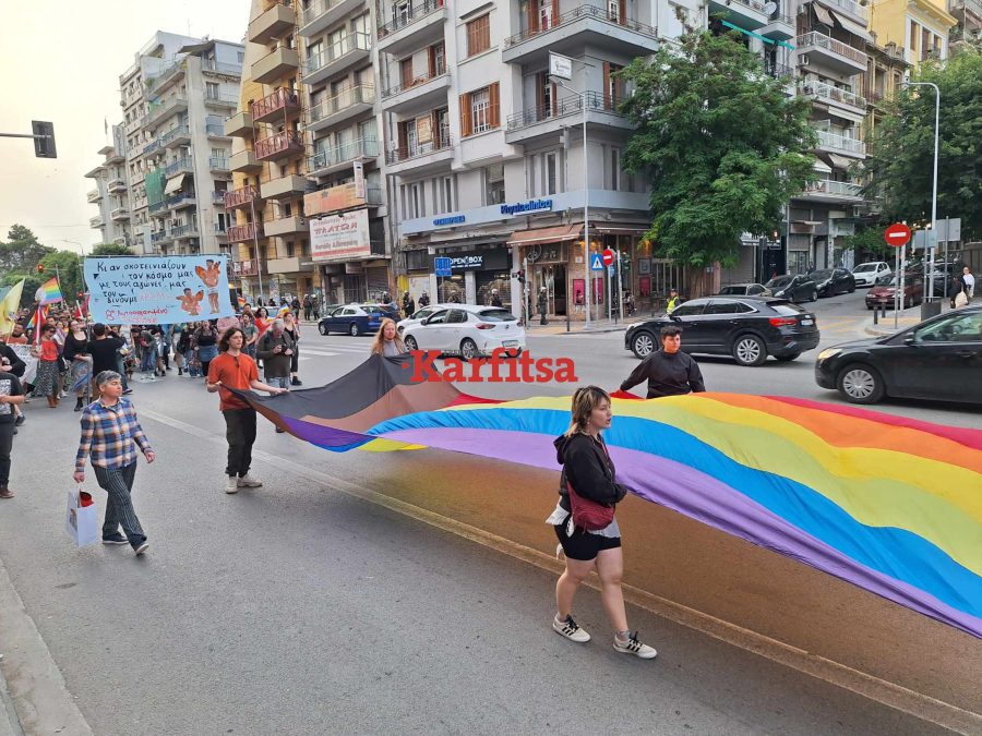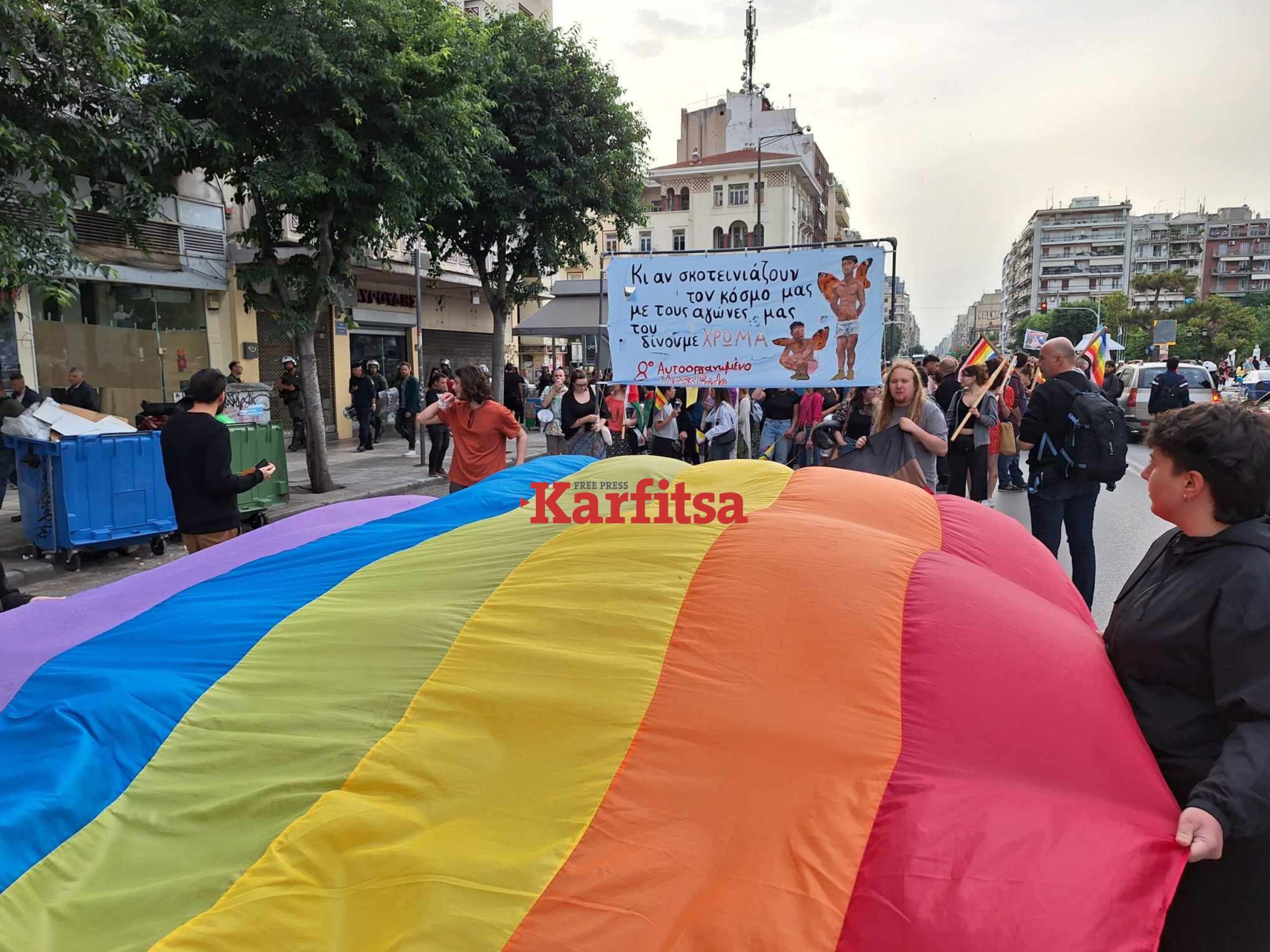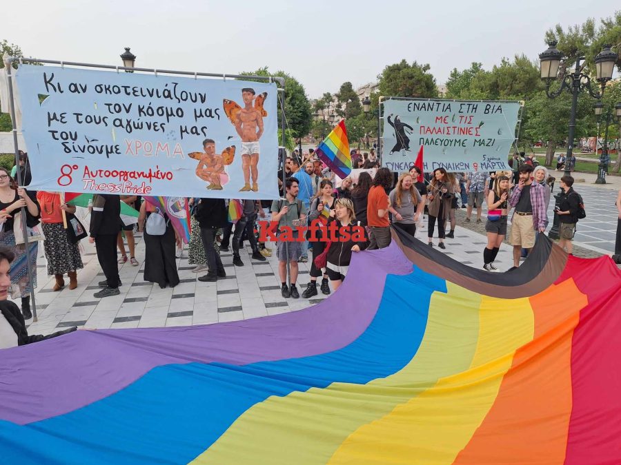 Με τα χρώματα του ουράνιου τόξου, σημαίες, συνθήματα και πανό πραγματοποιούν αυτή την ώρα πορεία στο κέντρο της Θεσσαλονίκης μέλη της ΛΟΑΤΚΙ κοινότητας στο πλαίσιο του 8ου Αυτοοργανωμένου Thessaloniki Pride.