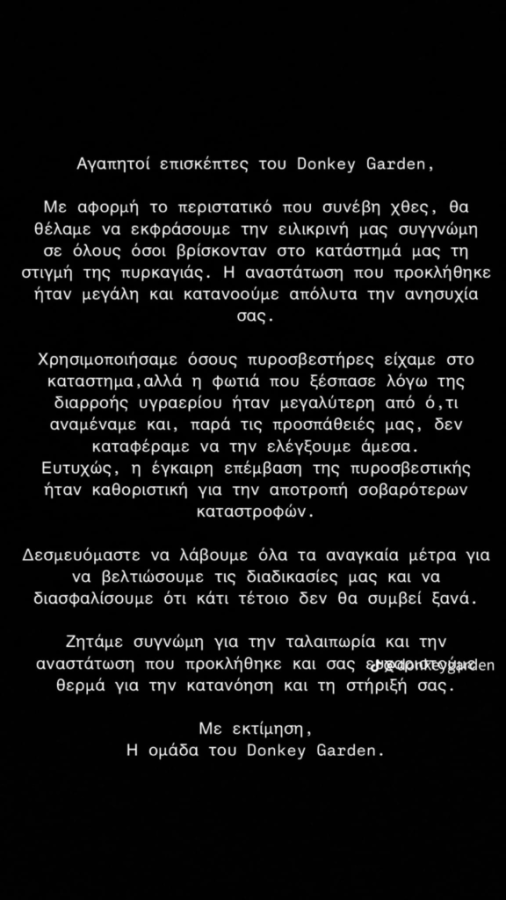 Το μαγαζί μέσω social media ανήρτησε μια ανακοίνωση ζητώντας ”συγγνώμη” από τους πελάτες του.