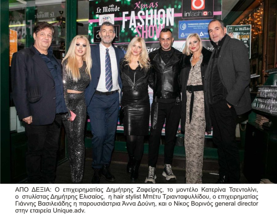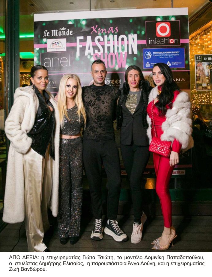 Το Fashion Show έγινε στο Cafe Bar Le Monde όπου πλήθος κόσμου έδωσε το παρών. Στο Show παρουσιάστηκαν τα εκπληκτικά και μοδάτα ρούχα της εταιρείας In fashion του επιχειρηματία Δημήτρη Ζαφείρη με την υπογραφή του γνωστού στυλίστα Δημήτρη Ελισαίου.