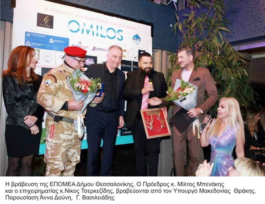 Ακολούθησε η βράβευση των ανδρών την ΕΜΑΚ, της ΕΠΟΜΕΑ (Επίλεκτη Ομαδα Ειδικών Αποστόλων του Δήμου Θεσσαλονίκης), της Ομάδα Διάσωσης Χανιώτη, Αθλητών και Επιχειρηματιών για την φιλανθρωπικη τους δράση! Μια εκπληκτική Φιλανθρωπική βραδιά που άφησε τις καλύτερες εντυπώσεις και χειροκροτήθηκε από όλους τους θαμώνες! Το παρόν έδωσαν αρκετοί επώνυμοι της Θεσσαλονίκης, πολιτικά πρόσωπα, δημοσιογράφοι influencers και πολύ κόσμος.