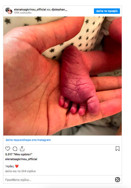 Eπιπλέον, η τραγουδίστρια ανάρτησε μια φωτογραφία με το πατουσάκι του μωρού. Στη λεζάντα της δημοσίευσής της, έγραψε: «Ήρθες».