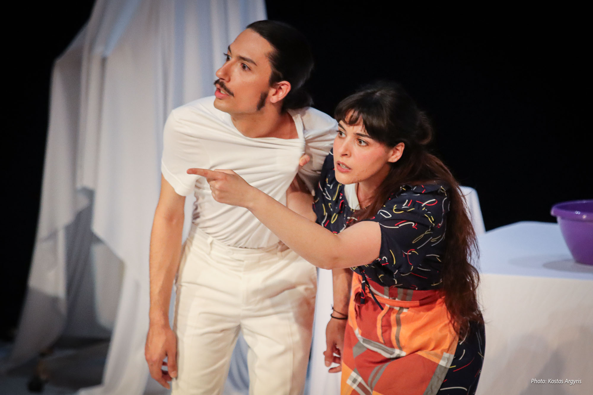Επί σκηνής, δύο νέοι, ταλαντούχοι ηθοποιοί (Ελίνα Αντωνίου και Μιχάλης Στεφανίδης) αφηγούνται τη συνταρακτική αυτή ιστορία, ενσαρκώνοντας, παράλληλα, τους βασικούς χαρακτήρες του έργου και όλους τους δευτερεύοντες ρόλους και δημιουργώντας ζωντανά το μουσικό περιβάλλον της παράστασης με τις φωνές τους και ένα πιάνο. Μια παράσταση μετά-θεάτρου, που προσπαθεί να αυτοπροσδιοριστεί ως κωμωδία, θίγοντας όμως ένα θέμα τραγικό και επίκαιρο.