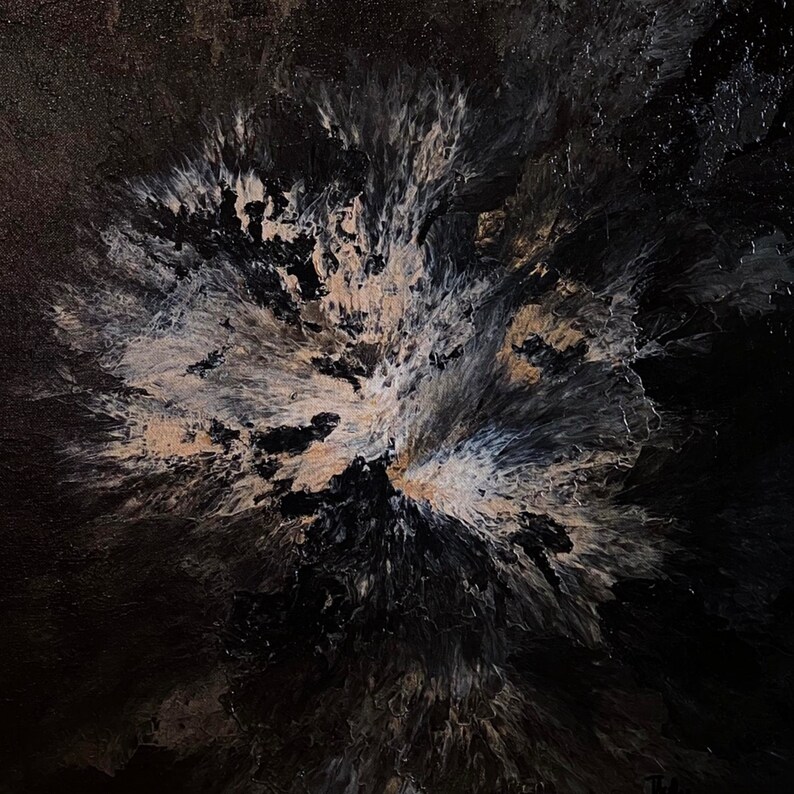 Μέσα σε μια ατμόσφαιρα μαύρου διαστήματος που στροβιλίζεται με κυματιστά χρώματα, στρογγυλές μορφές επιπλέουν σαν πλανήτες και επικαλύπτονται με μικροσκοπικούς πυρήνες που κοιτάζουν τον θεατή. Χρώμα, μάζα και μοτίβο χρησιμοποιούνται για να μεταφέρουν μια ήρεμη δυναμική, ένα σχήμα που ανοίγει μια τέταρτη διάσταση – μια διάσταση πνευματικότητας.