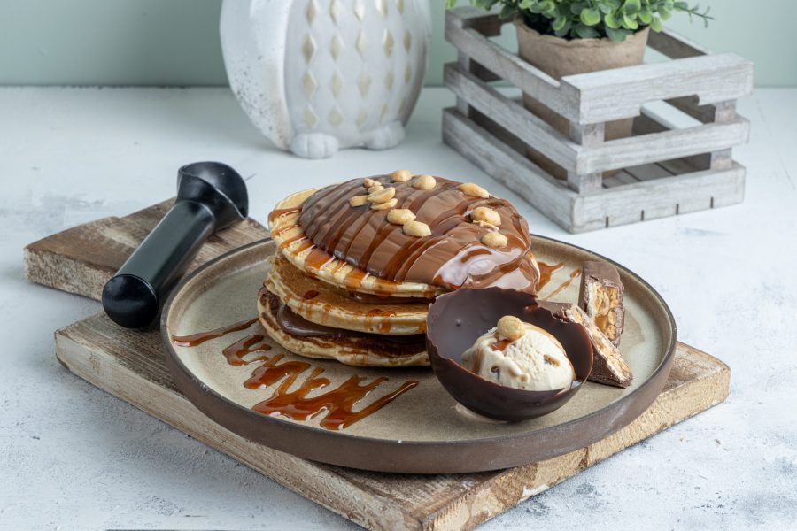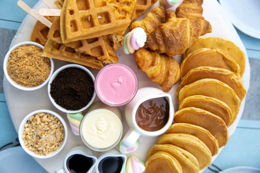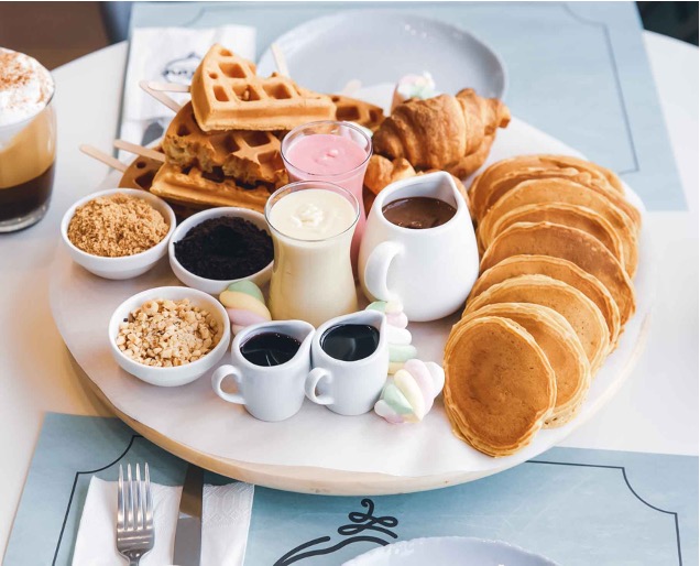 Η μεγάλη πιατέλα του brunch που είναι και το signature πιάτο του «Praline», αποτελείται από μικρά pancakes, βαφλάκια και κρουασανάκια συνοδευμένα από πολλές άλλες λιχουδιές, όπως είναι διάφορα είδη λιωμένης σοκολάτας (νουτέλας, φράουλας και μπουένο), τριμμένα μπισκότα, είδη μαρμελάδας και μικρά marshmallows!