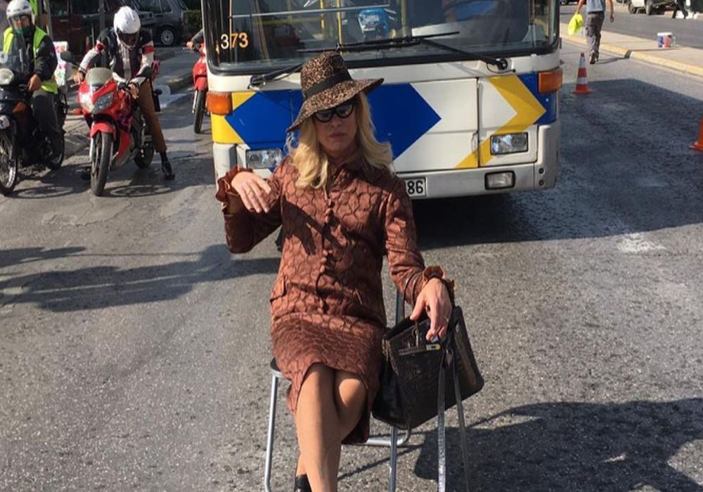 Ο γνωστός Έλληνας σχεδιαστής μόδας φόρεσε μία φούστα, ασορτί μπλούζα και καπέλο, πήρε τα δύο του σκυλιά και φωτογραφήθηκε μέσα στη μέση του δρόμου.